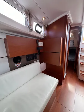 • Full hull width saloon: Bench seat on port and starboard sides, Large saloon table with 2 leaves and bottle rack, Retractable chart table on starboard side