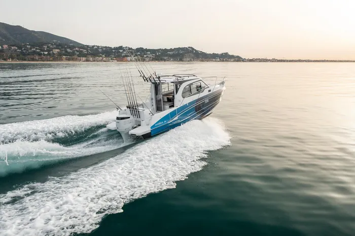 If you have your heart set on a top-of-the-line fishing boat, then the ANTARES 8 deserves your attention. Designed with fishing trips in mind, everything is perfectly crafted and designed, right down to the smallest detail, starting an open cockpit that makes it easier to move around the boat. The rear bench seat has been replaced by a fishing station that comes with professional-grade rod holders.