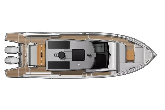 With light wood finishes, abundant light and modern design elements, the Gran Turismo 35 interior is as beautiful as it is functional. The convertible forward berth provides both a comfortable lounge and a spacious double bed. A mid cabin with berth completes the interior with refinement. A voluminous fully enclosed head with shower and a well-equipped galley make it perfect for weekend escapes and overnight stays. With smart storage solutions, integrated lighting, and thoughtful details, the Gran Turismo 35 interior elevates your on-water living experience.