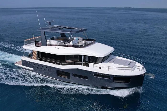 The BENETEAU Grand Trawler 63 is not just an evolution—it's a vision in long-distance comfort cruising. Built with the expertise of 140 years on the water, engineered using modern yet reliable technology and systems, and designed with purposeful elegance and quiet luxury, the new Grand Trawler will unlock the adventures and destinations you've been dreaming about for so long. From her powerful full-displacement hull to the sleek lines that give her a timeless presence on the water, the Grand Trawler 63 balances grace and functionality. Developed in collaboration with MICAD Naval Architects, this yacht delivers remarkable fuel efficiency—offering up to 1,000 nautical miles of range at 9 knots with 10% fuel reserve.
